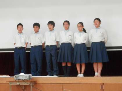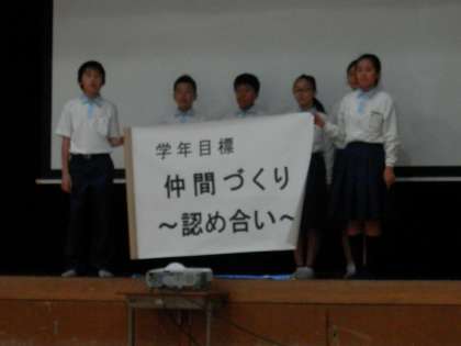 学年目標の発表については、写真のスライドを使って、これまでの活動が分かり易くしてありました。