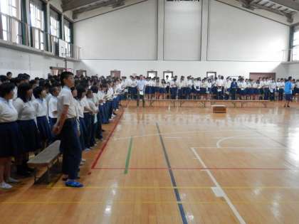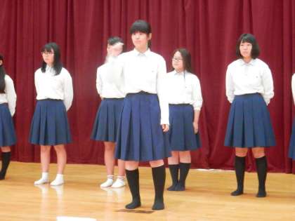 「生徒十訓」についての後、頑張って取り組んできた「校歌プロジェクト」についてです。校歌を全校合唱しました。