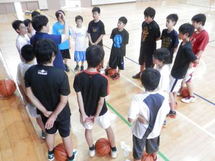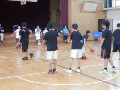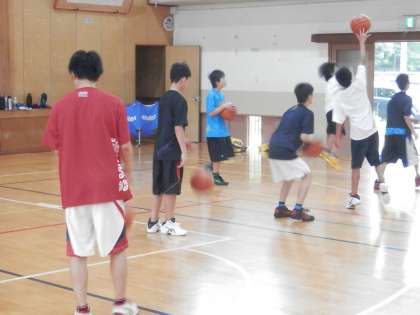 男子バスケットボール部は、OBの先輩が来てくれて活気のある練習をしていました。
