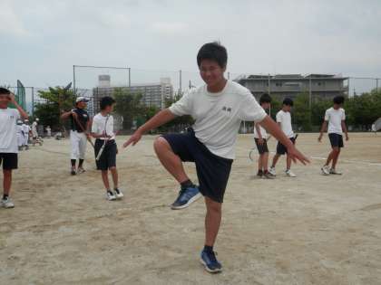 後片付けに入った男テニと、午後からの練習のために早めに来た女バスの子たちです。