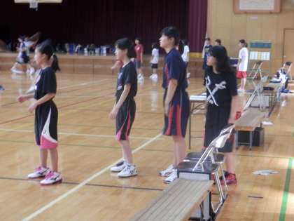 女子バスケットボール部は、今日も他校生を招いて練習試合をしています。