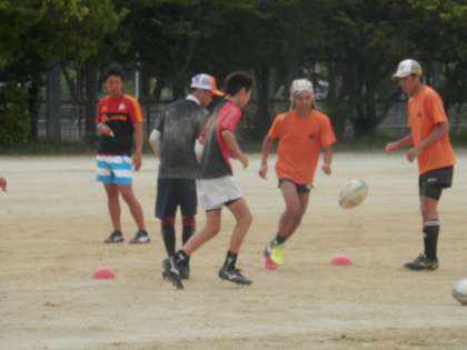 メイングランドで練習をしているのはラグビー部です。