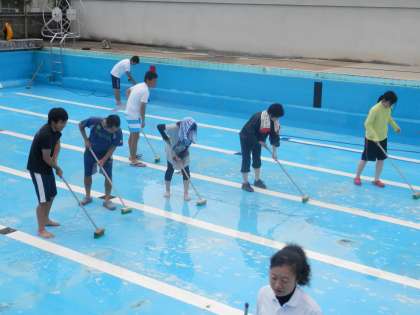 体育科の新田先生が、昨日のうちにそこのドロドロの部分を取り除いてくれていたので、今日の掃除は随分と手間が省けています。