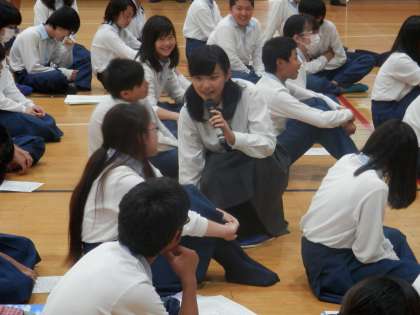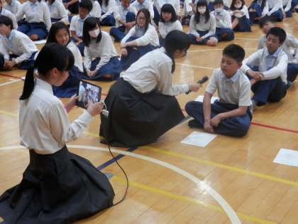 高校生が本校の生徒に対して、チャレンジの行先についてインタビューします。