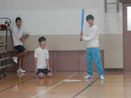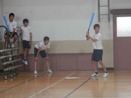 グランドの状態がよくないからでしょうか、体育館でソフトボールをしていました。