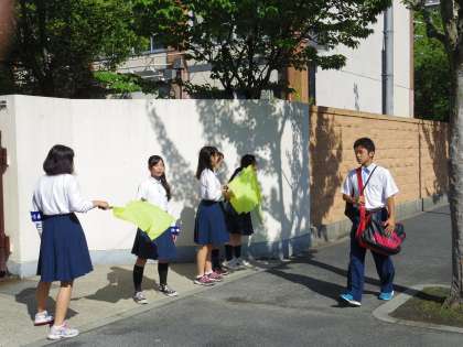 今日も元気いっぱいです。「生徒十訓の日」のアピールもありました。みなさん 今日も一日 暑さに負けず,がんばりましょう。