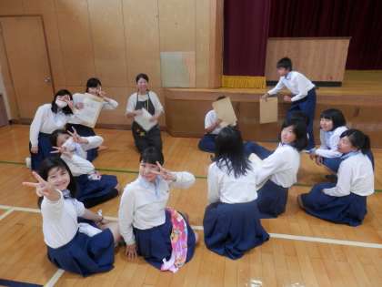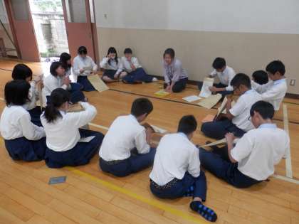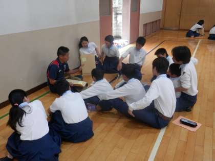 集会終了後、各担当の先生の所へ集まって最後の注意をしてもらっていました。