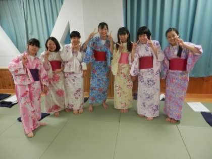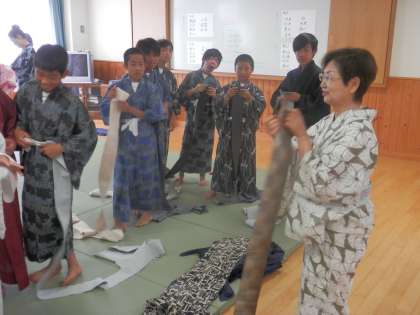 午前中、家庭科の特別授業で外部から先生をお招きして、浴衣の着付けを学ぶ「和装教室」を行いました。