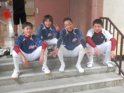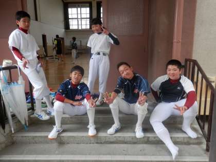 雨のためグランドでの練習ができない野球部は、体育館で思いっきり汗を流していました。早めに練習が終わった直後の様子です。