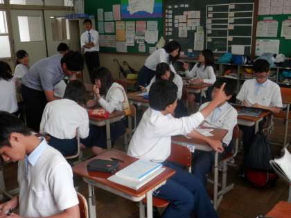 3年生を2人の先生で分担してもっているのですが、どちらの先生も全クラスに教えに行くとなると、こういう分け方になります。