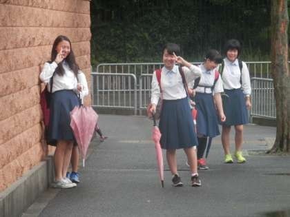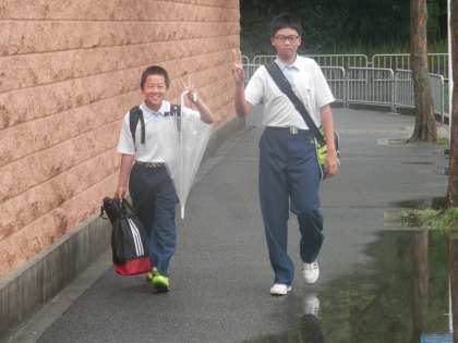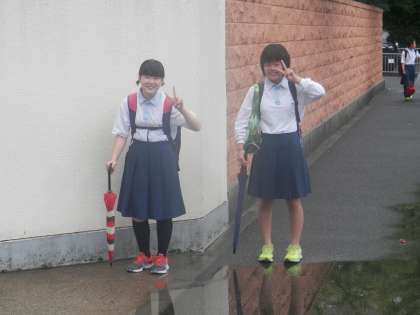 生徒の中には、傘をもたずに登校してくる人がいて、びしょ濡れになっていました。