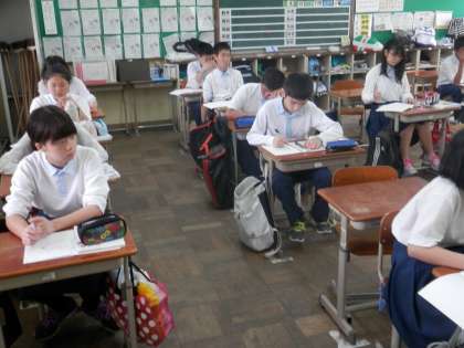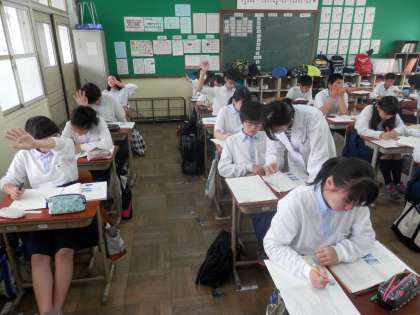 2年も、どのクラスでもテストの返却と正解答の解説が行われていました。