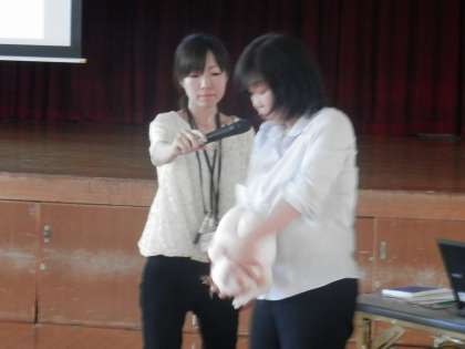 この後、生まれたばかりの赤ちゃんを抱いたり着替えをさせたりの体験学習も行いました。
