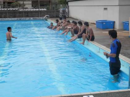 畑先生は、専門だけに水泳の指導には熱が入ります。