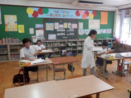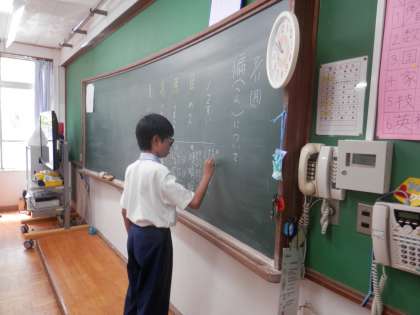 3年生が高校見学会に行っているので、今日は1・2年生だけが学校で学習しています。写真は国語の時間の様子です。