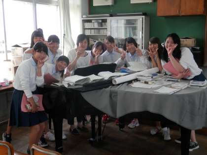 音楽室では、休憩時間にも拘らず合唱曲の練習を行っていました。アルトパートの人の特訓でしょうか。
