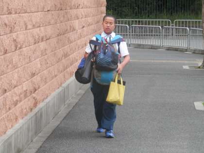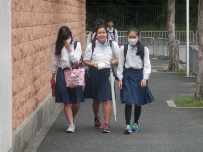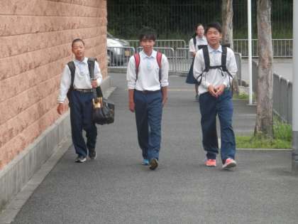 涼しい朝です。バイクで来る際、半袖では寒いくらいでした。校門に立っていても、気持ちよかったです。