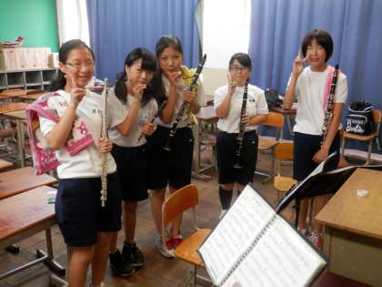 今日も吹奏楽部の人たちは、熱心に練習に励んでいます。