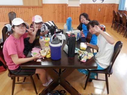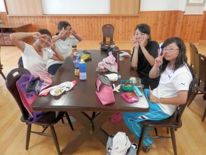 女子テニス部は、今日は一日練習だそうです。ランチルームに集まってみんなで昼食をとっています。