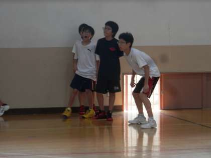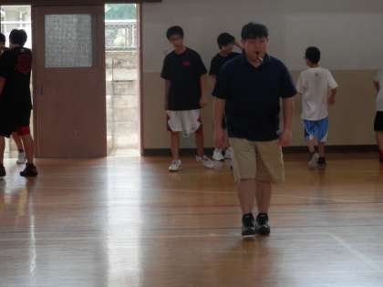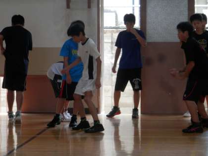 午後の体育館では男女のバスケットボール部が練習を始めています。