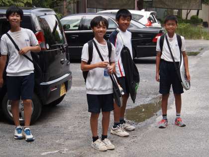 活動を終えて帰路へ着く男子テニス部のメンバーです。