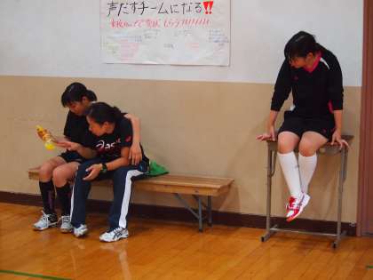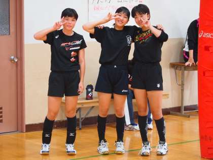 バレー部は今まさに練習を始めようというところを訪れました。