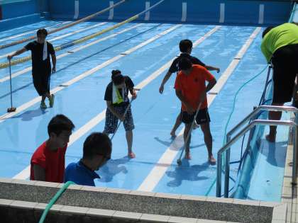プールでは教職員が清掃活動をしてくれています。