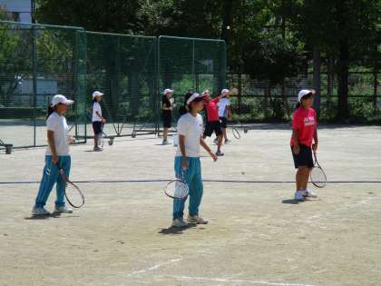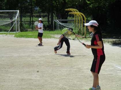 テニスコートでは、今日も女子部が猛練習をしています。