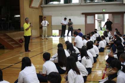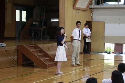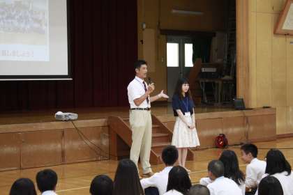 今日から本校のメンバーに加わった学生ボランティアの先生を紹介しました。