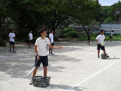 テニスコートでは男女ともに練習をしています。