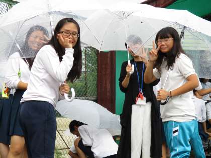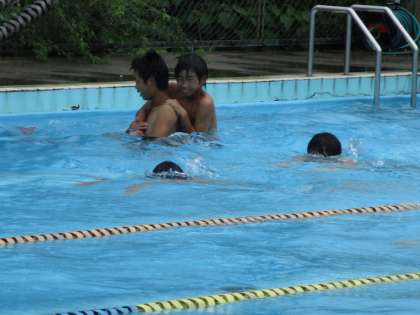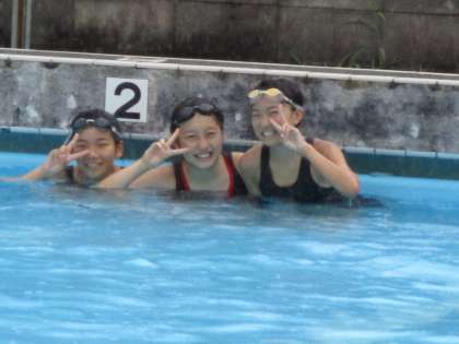雨の降るプールで水泳の学習です。見学の生徒が多いのも頷けました。そんな中頑張って入った人たちは偉い!