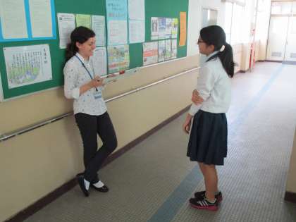 英語の時間にはALTの先生が聴き取りのテストをしてくれています。