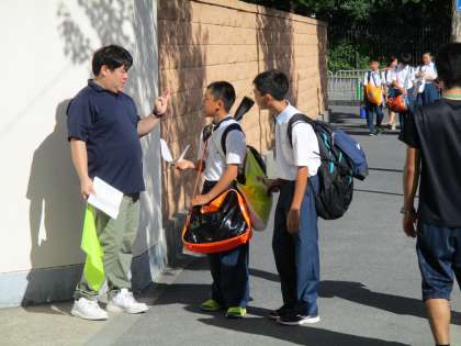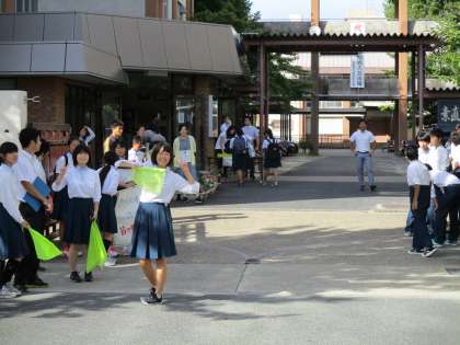 今日は月曜日ということで、生徒会の役員さんたちが校門でキャンペーンの声掛けを行ってくれました。同時に服装チェックもしてくれています。