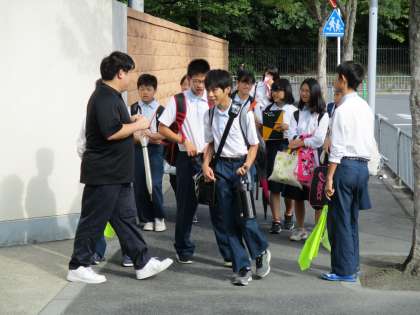 生徒会役員の人たちが服装チェックをしてくれています。
