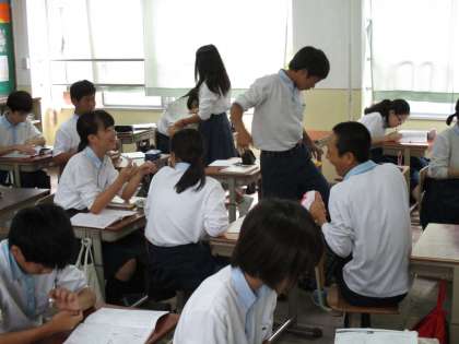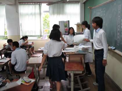 次は、1組の国語と2組の理科の時間の様子です。国語の時間、みんな、よい表情で学習に臨んでいました。
