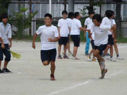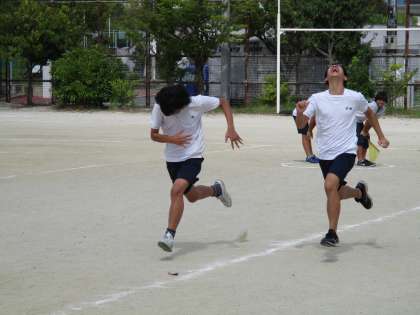 50メートル走のタイム測定です。必死の表情はいいですね。