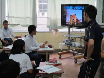 社会では、原爆を投下された広島の街の様子が話されていました。原爆の威力のすさまじさに、生徒たちは食い入るようにTV画面を観ていました。