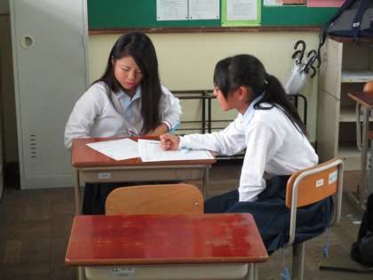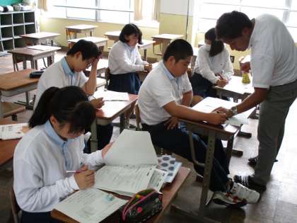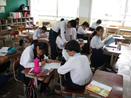 原学級では「教え合い学習」が行われ、分割学級では詳しく先生による説明がされていました。