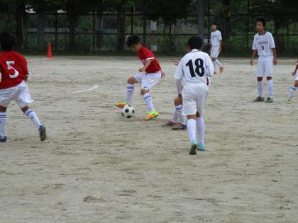 3年生が抜けたとはいえ、強いチームです。その相手と互角に戦っています。1年生がたくさん出場していますが、よいチームに仕上がってきているようです。