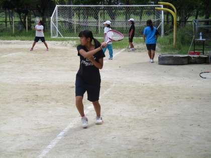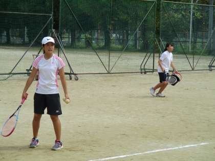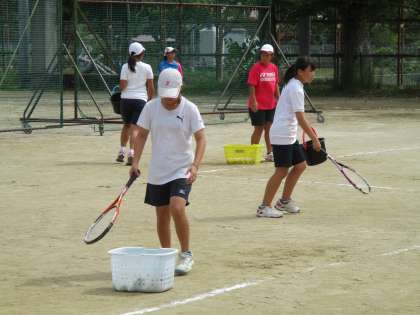 女子テニス部は、昨日の反省に立った練習内容で、主に基本練習をしていました。