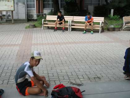 ラグビー部は練習後の様子です。