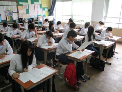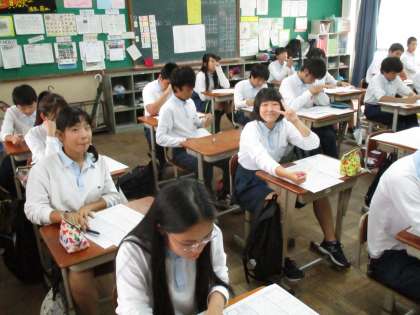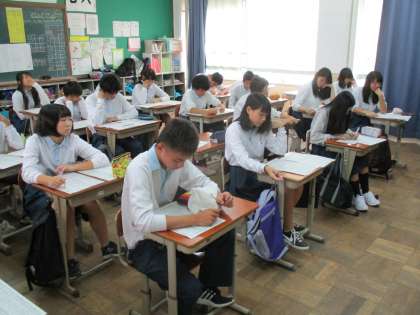3年は、どのクラスもテストの返却と正解答の解説でした。