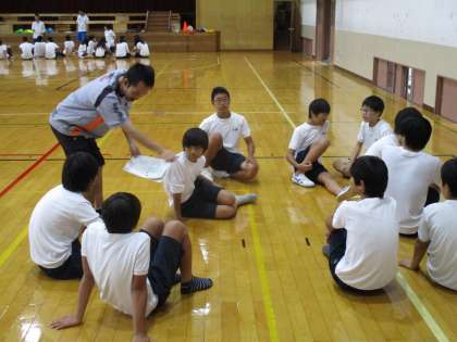 行進等の集団行動の練習に続いて、召集の練習です。