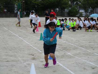 雨が降ってきましたが、全員リレーの練習を頑張っていました。