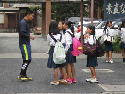 校門付近で先生と談笑するこのシーンが好きです。