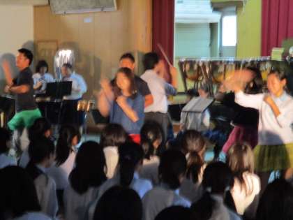 3曲目からは、先生が歌ったり踊ったり、観客である子どもたちも一緒になって大いに盛り上がりました。