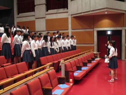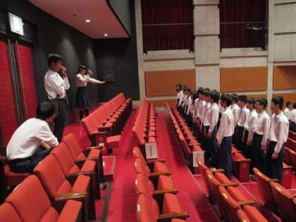 順番に舞台に立って簡単なリハーサルを行うのだとばかり思っていたのですが、ホールのあちらこちらでクラスごとの練習が始まりました。それがまた、凄く激しくて…。