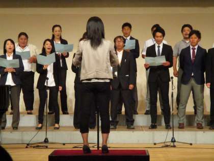 審査の集計ができるまでのあいだ、教職員合唱です。