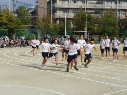 3年生の学級対抗リレーです。3年生にとっては,中学校生活最後の体育大会種目になります。みんなで熱く盛り上がりました。