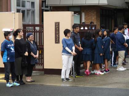 ちらほらと上着を着ないで登校してくる人がいますが、この後教室でそのことを聴き、明日からはきちんとしてくるのだと思います。